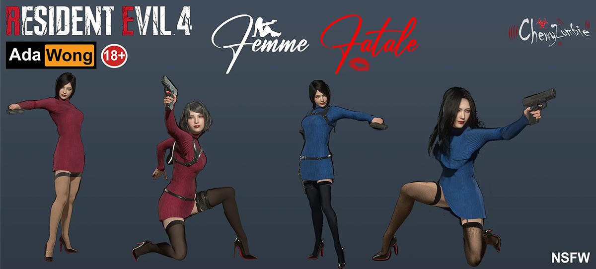 艾达·王系列:红色皮革比基尼、兔女郎、女仆装、蕾丝连衣裙、乳胶紧身衣、阴影之心内衣、蝴蝶高跟鞋、蛇蝎美人等;