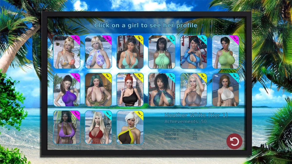 《假日岛》的故事设定堪称梦幻:你(玩家)幸运地中了一张彩票,获得了一次前往遥远太平洋小岛的豪华度假机会。然而,这座岛屿绝非普通旅游景点!它是一个云集了全球最美丽女性的天堂。从阳光下的沙滩到烛光摇曳的卧室,每一刻都充满了令人心动的邂逅。