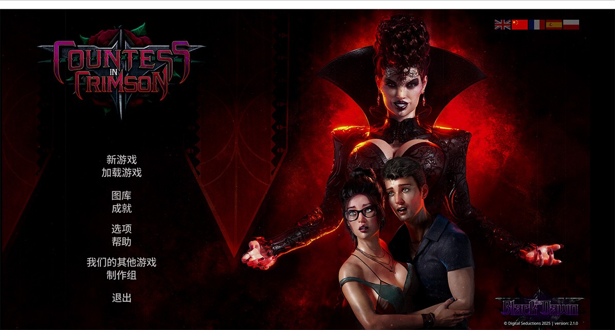 《猩红女伯爵》(Countess in Crimson)将惊悚氛围与成人元素完美结合,打造出一款别具一格的视觉小说冒险游戏。中文版现已推送至V2.10正式完结版!官方近日重磅发布玩家翘首以盼的DLC——《至暗黎明》(The Black Dawn),为故事注入全新活力,带来前所未有的深度沉浸!