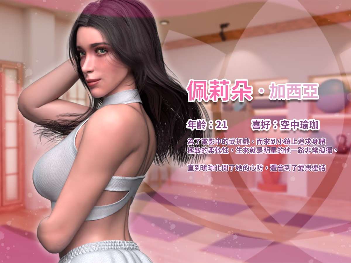 游戏的故事从一个身无分文的瑜伽教练开始——你被房东赶出家门,工作室濒临倒闭,生活陷入绝境。 但一切从“纯粹感官能量:普拉纳能量流动”开始改变。你将通过瑜伽的奥秘,与小镇上的每一位居民建立深刻联系:从身体上的拉伸指导,到精神上的心灵对话,甚至更深层的“释放”。