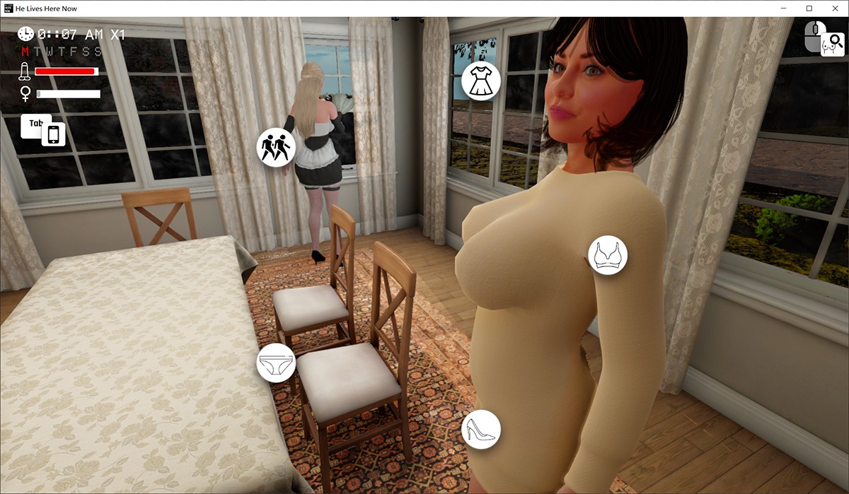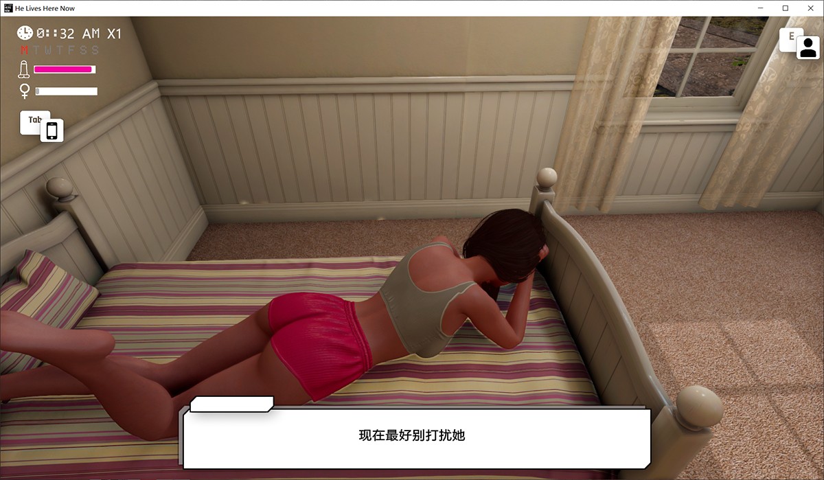 在模拟游戏领域,一款出色作品需兼具沉浸式视觉、自由探索与策略互动。《He Lives Here Now》v5.8汉化版,由EvilGuest开发,是一款Unity引擎打造的3D沙盒游戏。 玩家扮演一名年轻男子,通过父亲的关系,搬入老友莎拉的纯女家庭同住。这里满是魅力女性,你可以通过对话与行动赢得她们的信任,巧妙规划日常,将平凡住所转化为专属“游乐场”——前提是避开风险。